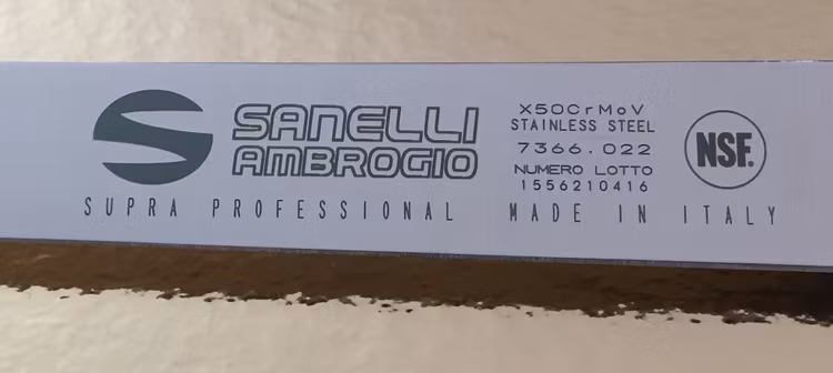 Satin- blad är tillverkad av av Bonpertuis® rostfritt stål, speciellt för högkvalitativa knivar